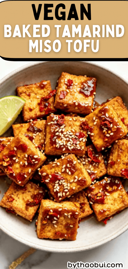 Tofu is a blank slate, so giving it a deep-flavored glaze like tamarind + miso helps it absorb flavor better. Baking the tofu dries it slightly and caramelizes the sugars in the sauce, creating crispy edges and rich umami in every bite. Miso brings glutamates (natural umami), while tamarind adds acidity to balance the fat and salt.
