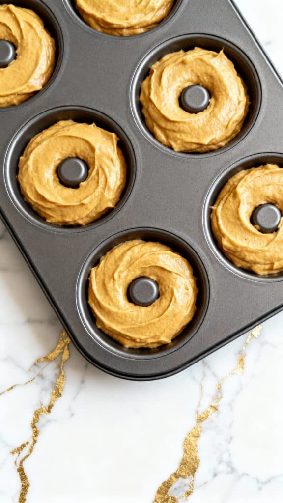 Spoon or pipe the batter into a greased donut pan, filling each mold about 3/4 full.