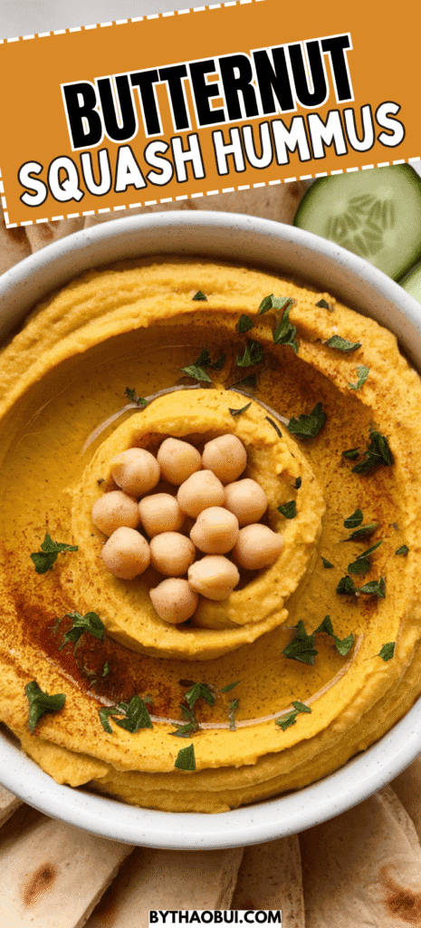 I made this butternut squash hummus after roasting too much squash one weekend and didn’t want it to go to waste. Blending it into hummus turned out to be a perfect move — it adds natural sweetness, creaminess, and makes a simple snack feel fancy.