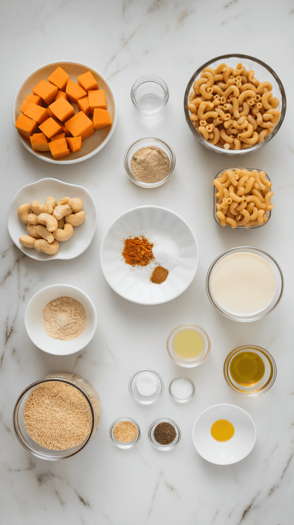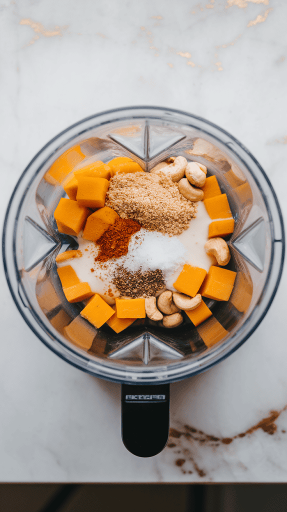 The butternut squash brings natural sweetness and a creamy base when blended, while the cashews add fat and thickness. Nutritional yeast gives that classic “cheesy” flavor without dairy. When blended together, the starch in the squash helps emulsify everything into a smooth, clingy sauce.