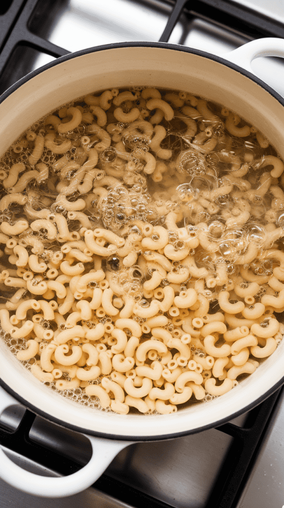 In another pot, cook 2 cups elbow macaroni (or shells) in salted water according to package directions. Drain and set aside.