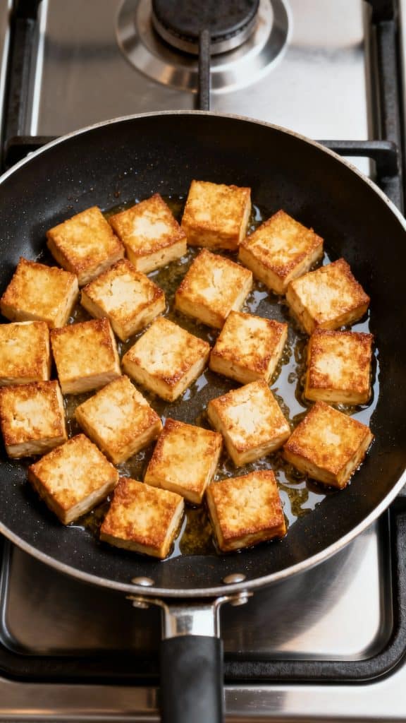 - Not pressing the tofu — it’ll be too soft and won’t brown well