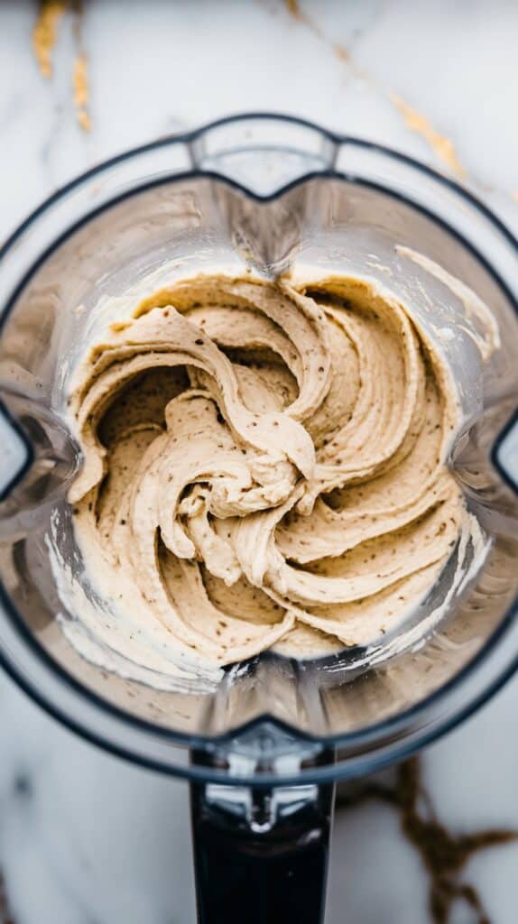 While the soup is cooking, blend 1 cup soaked raw cashews, 2 tbsp lemon juice, 1 garlic clove, ¼ cup water, 1 tbsp nutritional yeast, and ½ tsp salt in a blender until smooth and creamy.