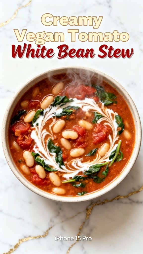 This Creamy Vegan Tomato White Bean Stew is one of those meals that feels like a warm hug in a bowl.