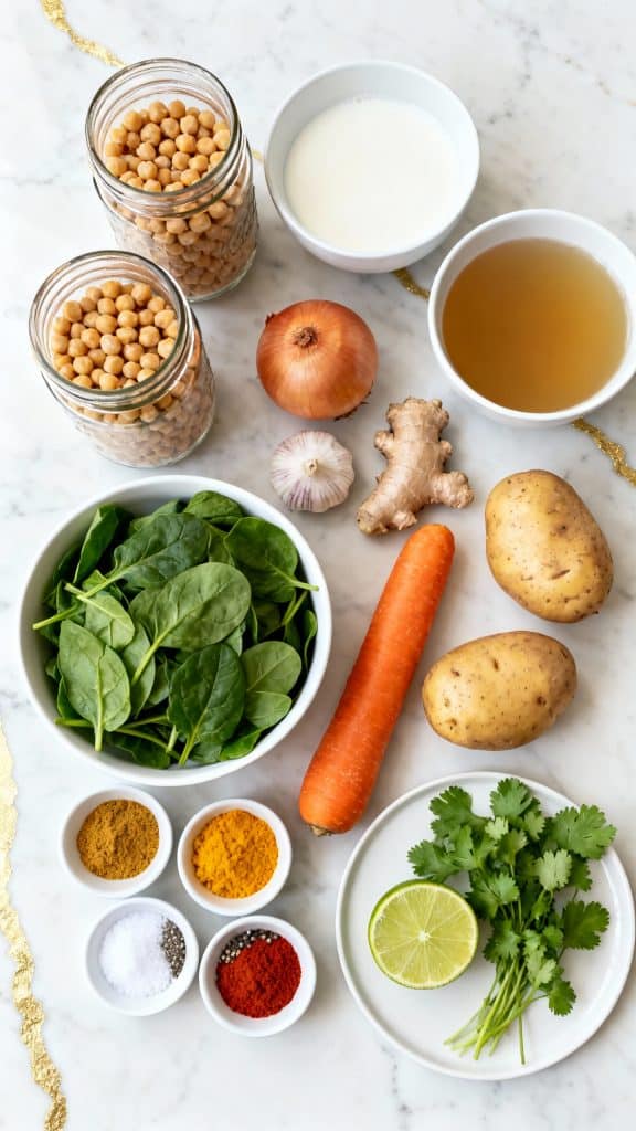 Chickpeas are packed with starch and protein, which absorb flavor over time. Slow cooking lets the spices bloom and the starches in the potatoes help naturally thicken the sauce. Coconut milk adds fat to carry the flavor and smooth out any harsh spices.