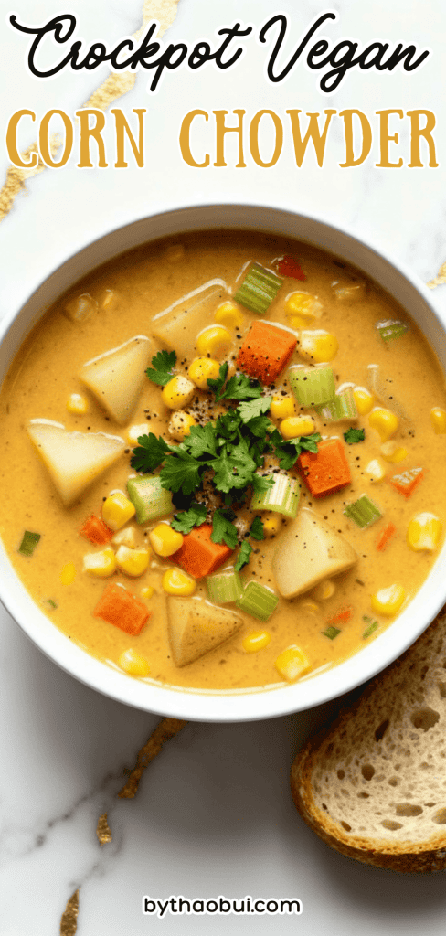 This crockpot vegan corn chowder is cozy, creamy, and packed with flavor