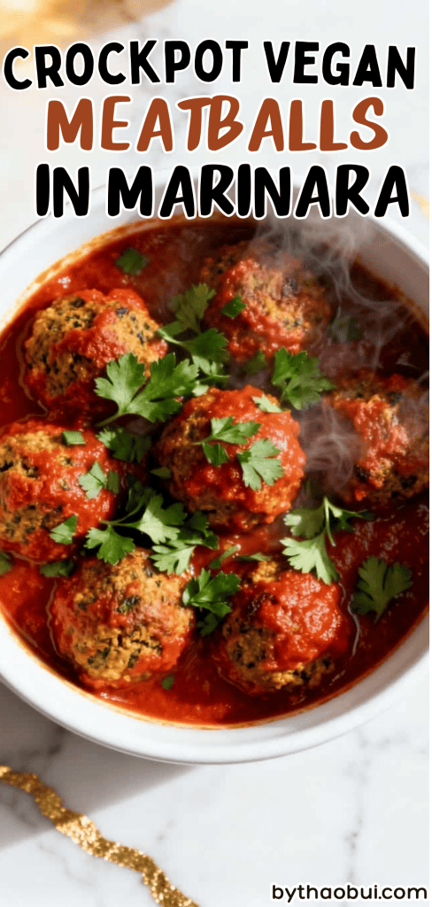 These crockpot vegan meatballs are tender, packed with flavor, and slowly simmered in marinara sauce until everything just melts together.
