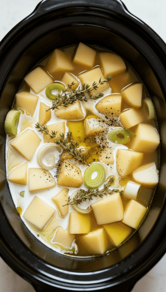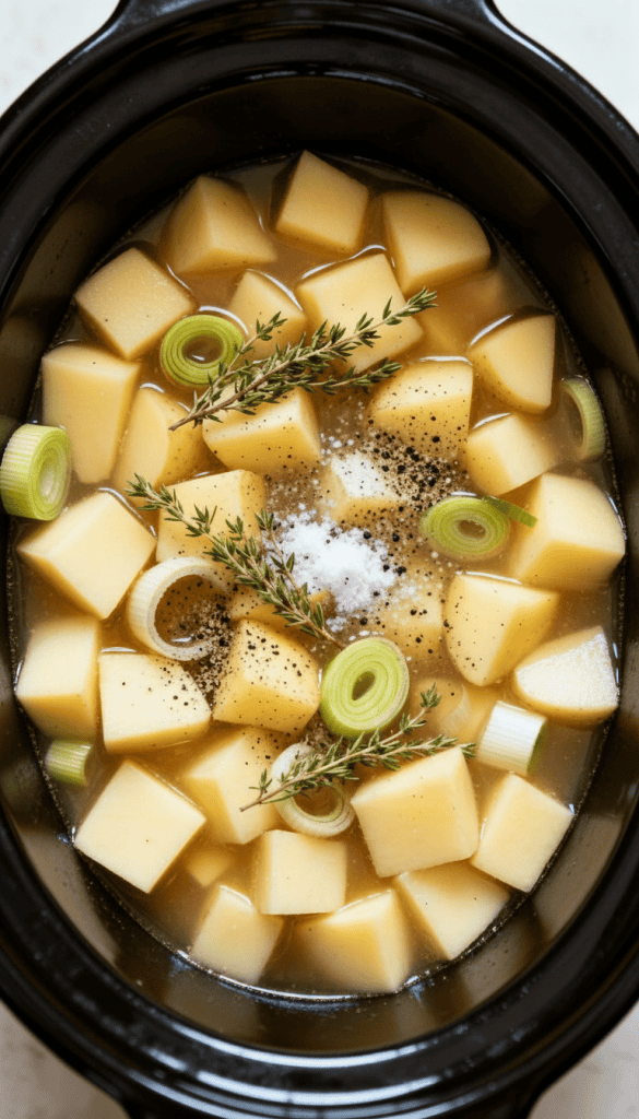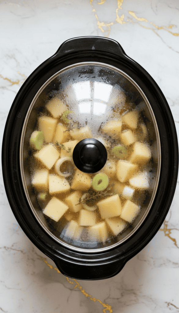 Place the lid on the crockpot and cook on LOW for 6–8 hours or HIGH for 3–4 hours, until potatoes are very tender.