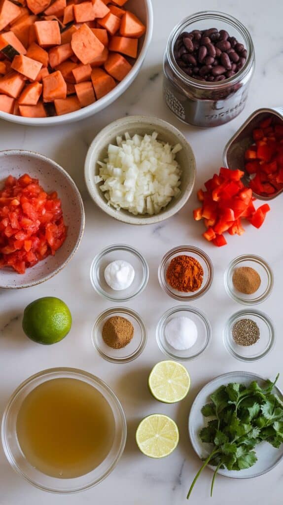 The starch from sweet potatoes thickens the stew naturally as it cooks, creating a creamy texture without cream. Black beans release starch too, adding to that thickness. Slow cooking allows time for the spices to meld and deepen in flavor, especially the smoky paprika and cumin. Lime juice at the end cuts through the richness and balances the flavor.