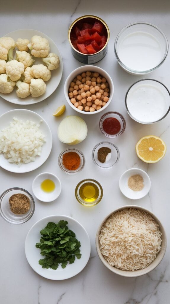 The creamy coconut-tomato sauce, the tender cauliflower, and the hearty chickpeas make it super satisfying without any meat or dairy.