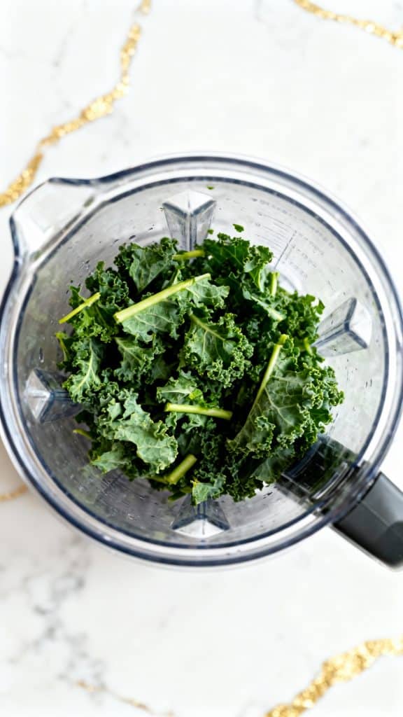 Step 1: Add chopped kale to blender