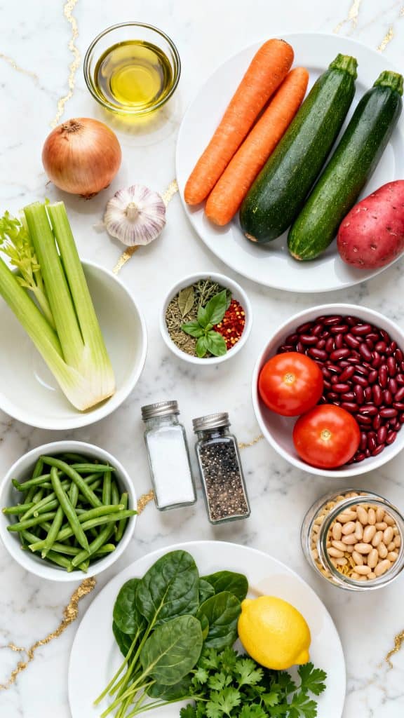 Minestrone soup builds flavor in layers. First, you sauté the aromatics to release flavor compounds in the garlic and onion. The slow simmering allows starches from the potatoes and pasta to slightly thicken the broth. Beans add protein and creaminess, and the acid from the tomatoes and lemon balances the dish beautifully.