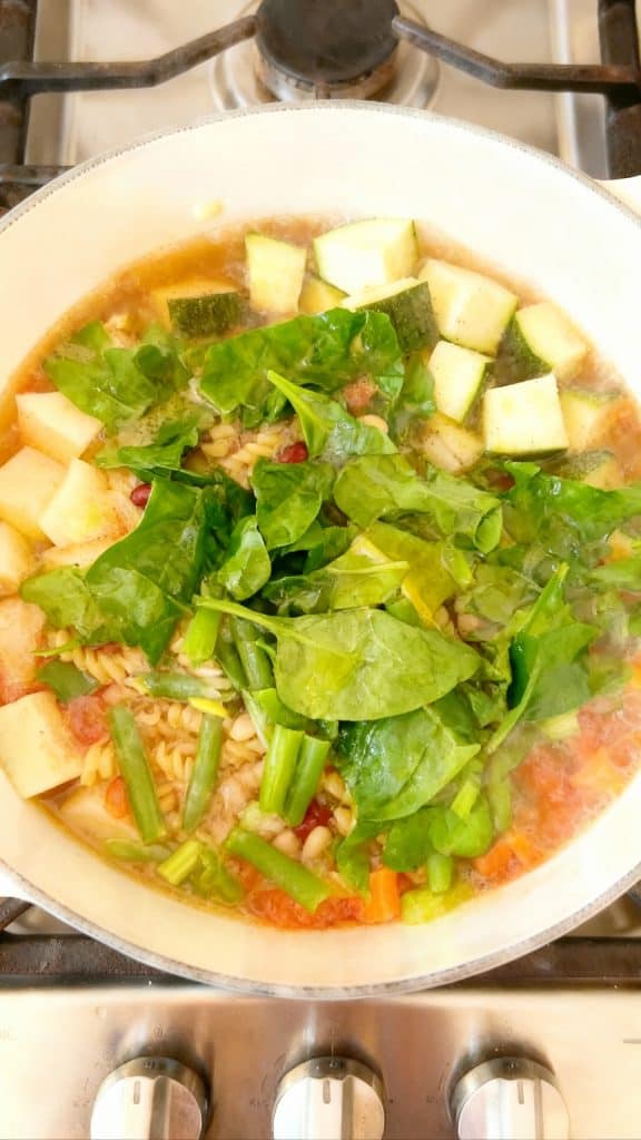 Yes—just add pasta and greens in the last 30 minutes of cooking.