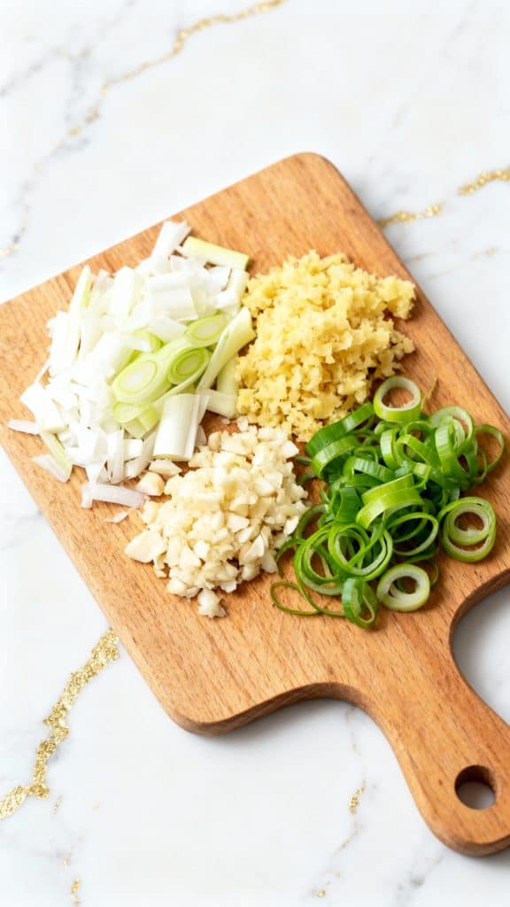Mince 1 stalk lemongrass (white part only), 1 teaspoon grated ginger, and 1 garlic clove.