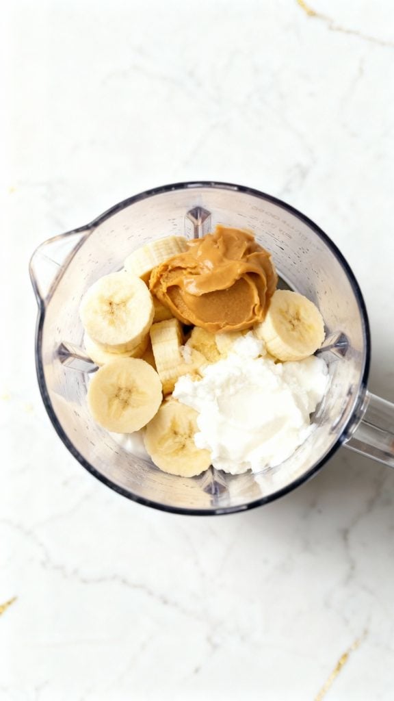 Bananas contain natural sugars and starches that freeze well and blend into a thick, creamy base—like soft-serve. The fat in peanut butter helps keep you full and gives that silky texture. Greek yogurt adds protein and tang, and blending everything cold helps keep it thick instead of soupy.