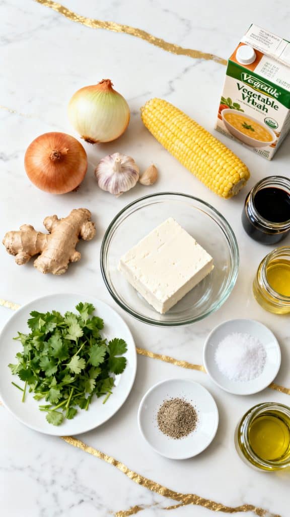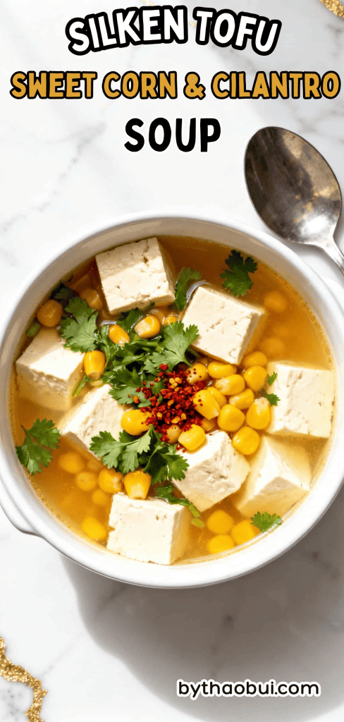 Silken tofu is made with more water than firm tofu, giving it that smooth, pudding-like texture. It doesn’t need cooking—just gentle heating. The starch in sweet corn adds a little natural thickness, and the sesame oil gives it a deep, nutty finish.