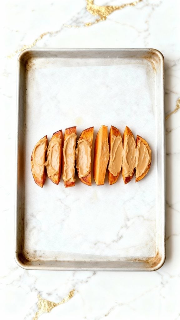 Sweet potatoes contain natural sugars and starch that caramelize when roasted. When you slice them thin and bake them, the edges get slightly crisp while the center stays soft—mimicking toast. The almond butter adds healthy fat and protein, and the banana gives a naturally sweet topping that pairs perfectly.