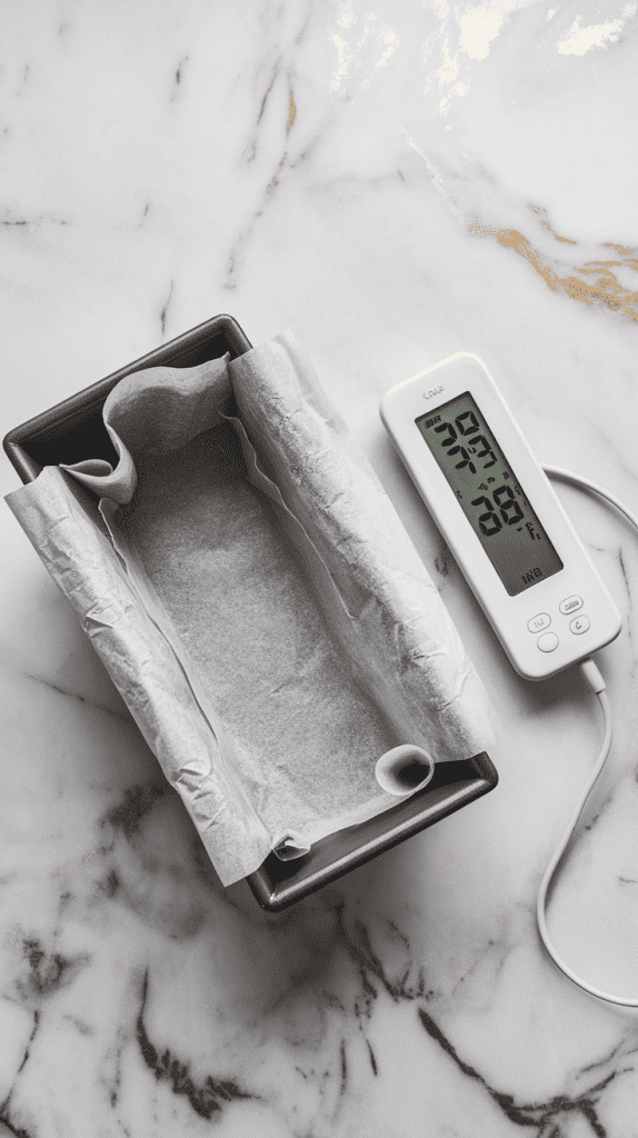 Preheat your oven to 350°F (175°C). Line a 9×5-inch loaf pan with parchment paper or lightly grease it.