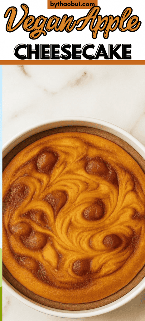This vegan apple cheesecake is rich, creamy, and filled with warm apple-cinnamon swirls that taste like fall in every bite.