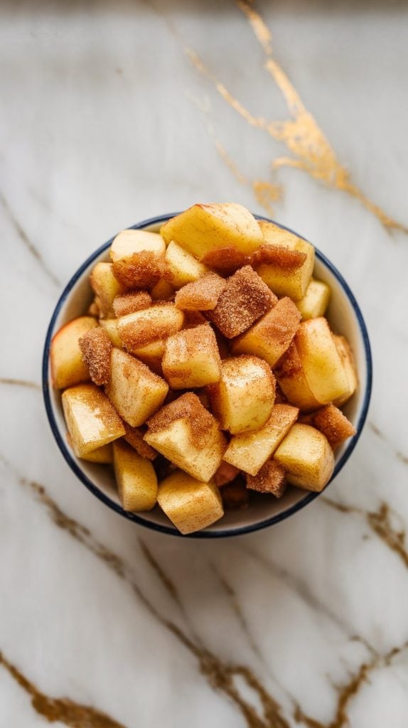 Mix 2 finely diced peeled apples, ½ cup brown sugar, and 1 tbsp cinnamon in a small bowl.