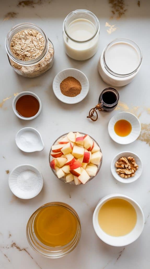 The flaxseed acts as a binder (like eggs would), holding everything together. Baking powder gives it a little lift, so it’s not dense. The oats soak up the almond milk, giving that baked texture. Cinnamon and vanilla help amplify the natural sweetness of the apples without needing extra sugar.