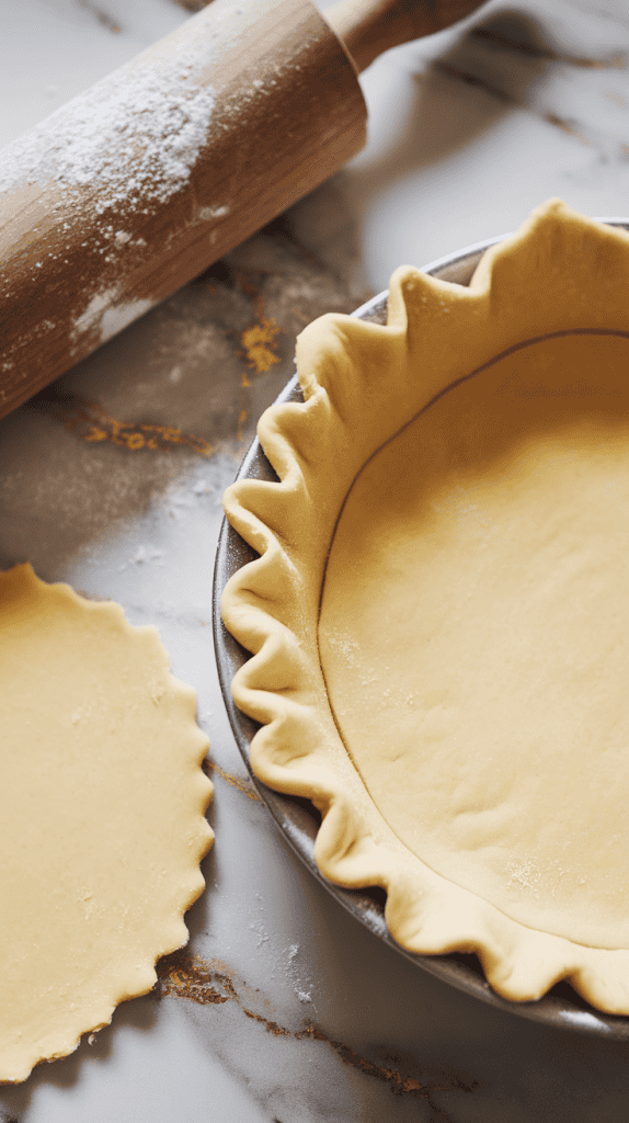 In a large bowl, mix 2 ½ cups all-purpose flour, 1 tsp salt, and 1 tbsp sugar. Add 1 cup cold vegan butter (cubed) and cut it in using a pastry cutter or fork until the texture looks like coarse crumbs. Slowly add 6–8 tbsp ice water, one tablespoon at a time, until the dough holds together. Split dough in half, form into 2 discs, wrap in plastic, and chill for 30 minutes.