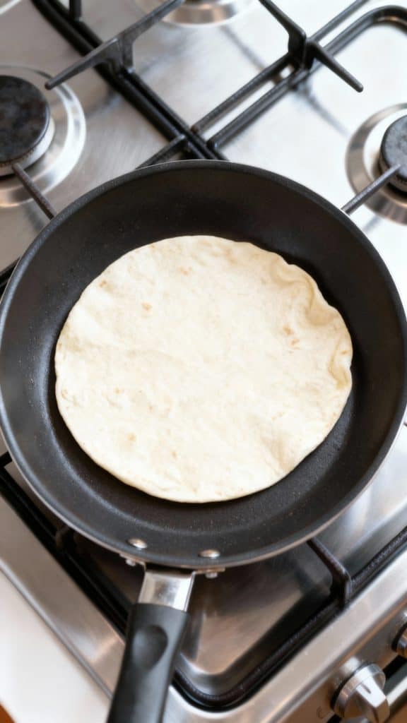 In a separate dry pan, warm each tortilla for 20–30 seconds on each side until soft and pliable.