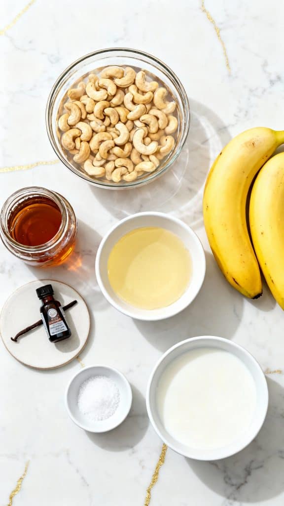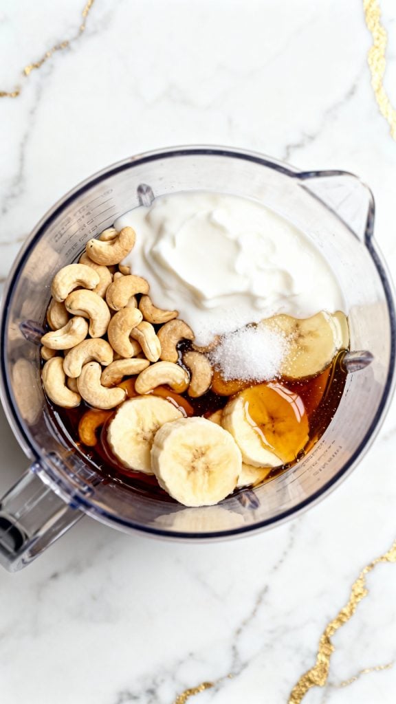 Soak the cashews the night before and freeze your banana slices in advance. You can also blend everything and keep the mix in the fridge for a few hours before freezing if you want to prep ahead.