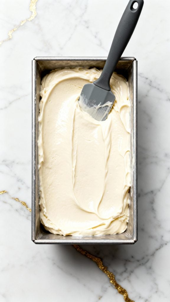 Pour the blended mixture into a loaf pan or shallow freezer-safe container. Use a spatula to smooth the top.