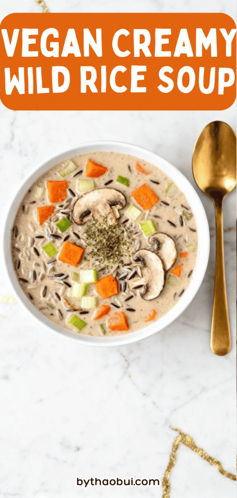 Wild rice takes time to cook, but that slow simmer releases starches into the broth, naturally thickening the soup. The flour and coconut milk work together to create that velvety finish, and the mushrooms bring natural umami without needing meat.