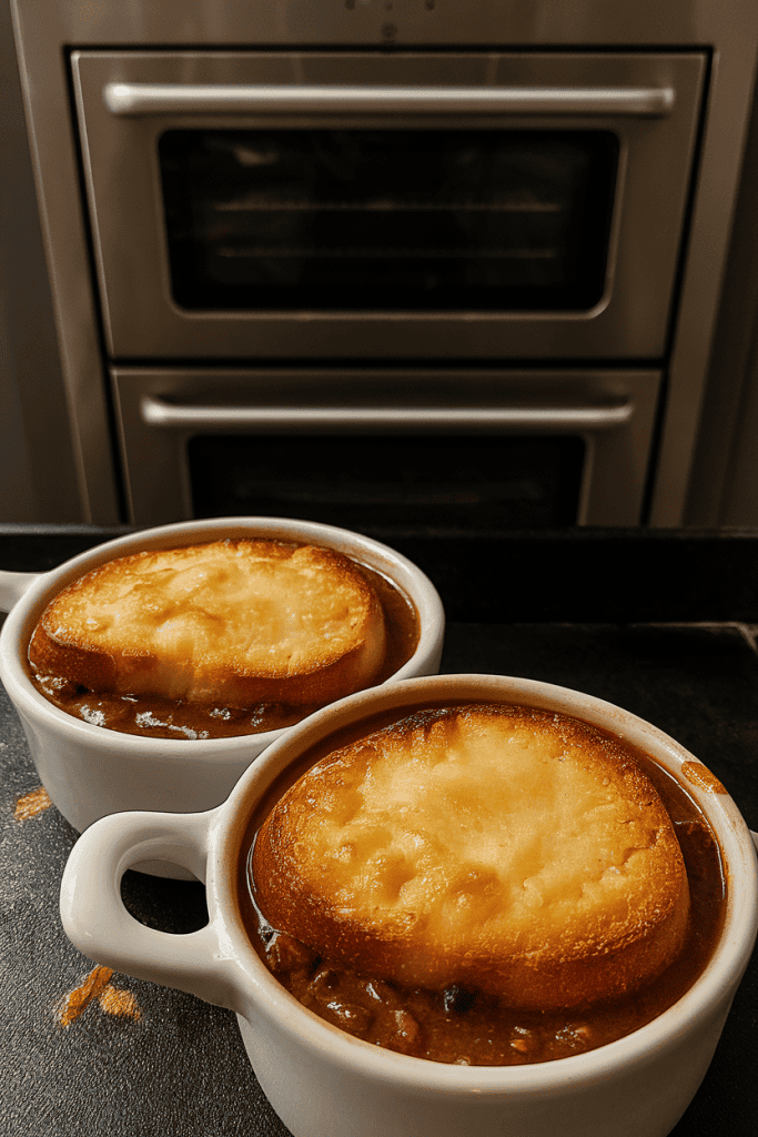 This soup reminds me of cold days when I’d come home, drop my stuff, and smell onions slowly cooking on the stove. I’d stand over the pot, sneaking spoonfuls and waiting for that perfect moment to toast the bread and melt the cheese. It’s pure comfort and always feels a little special.