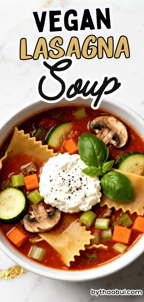 The secret is in the way the noodles cook in the soup. As they simmer, they release starch, which helps naturally thicken the broth, making everything feel creamier. Adding tomato paste early gives a deeper, slow-cooked flavor in less time. And topping with vegan ricotta right before serving adds that classic lasagna richness without needing to bake anything.