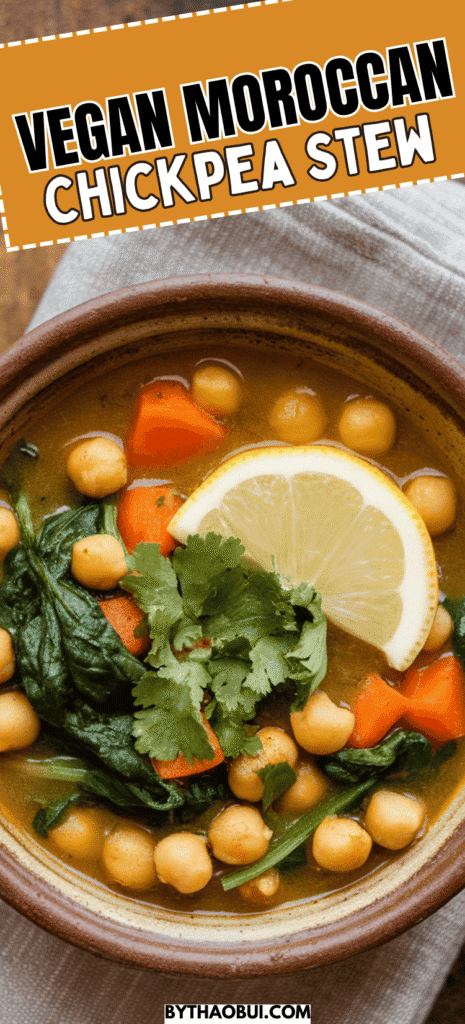 This Moroccan Chickpea Stew is warm, cozy, and packed with flavor.