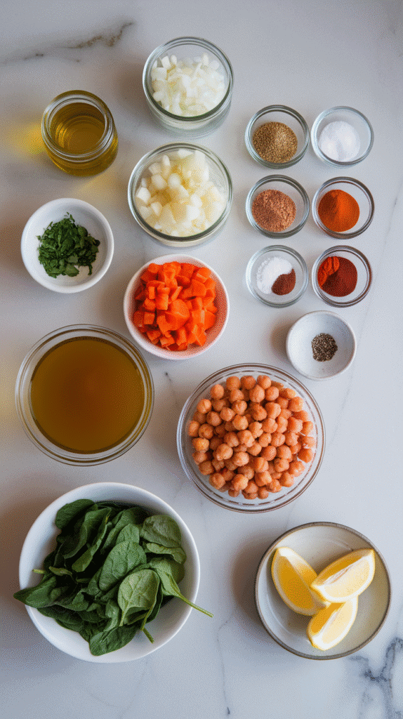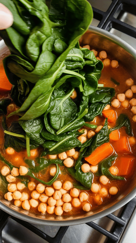 The combination of warming spices with acidity from tomatoes balances the dish perfectly. Chickpeas absorb flavor as they simmer, and the starch they release helps naturally thicken the broth. The spinach added at the end keeps the color and nutrients intact without overcooking.