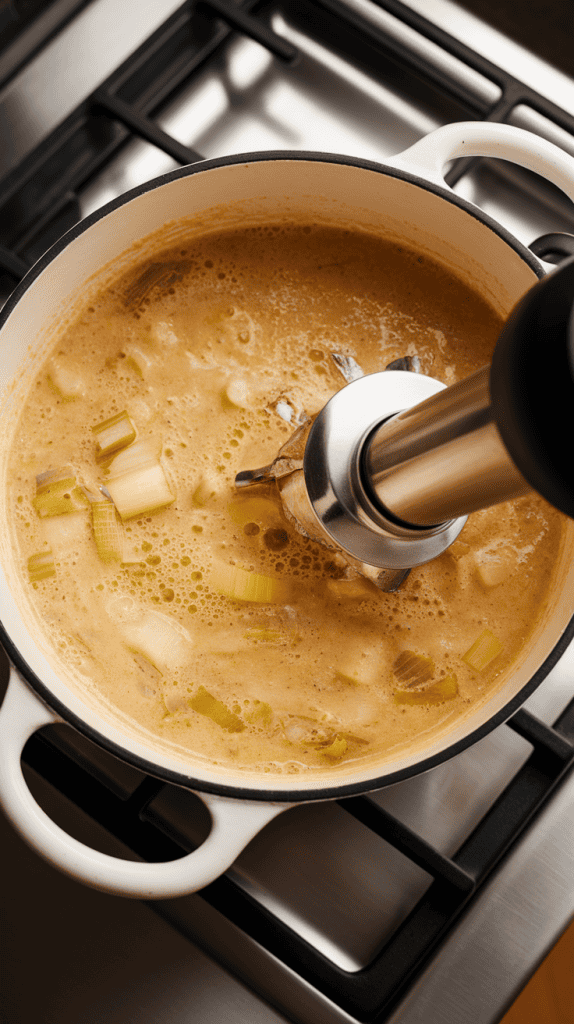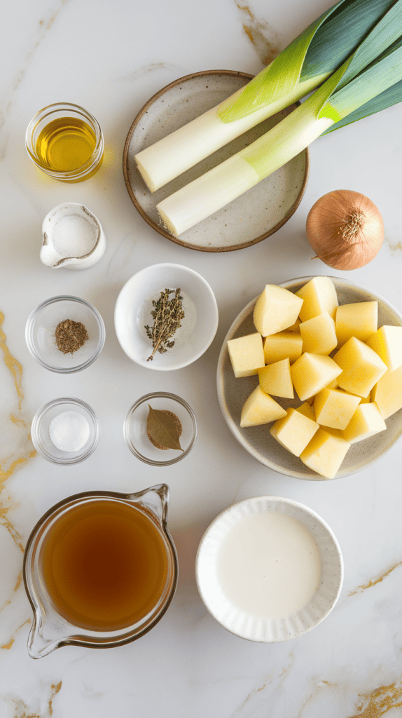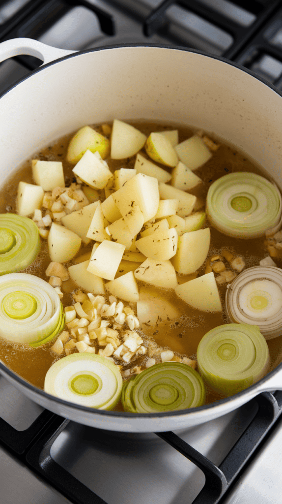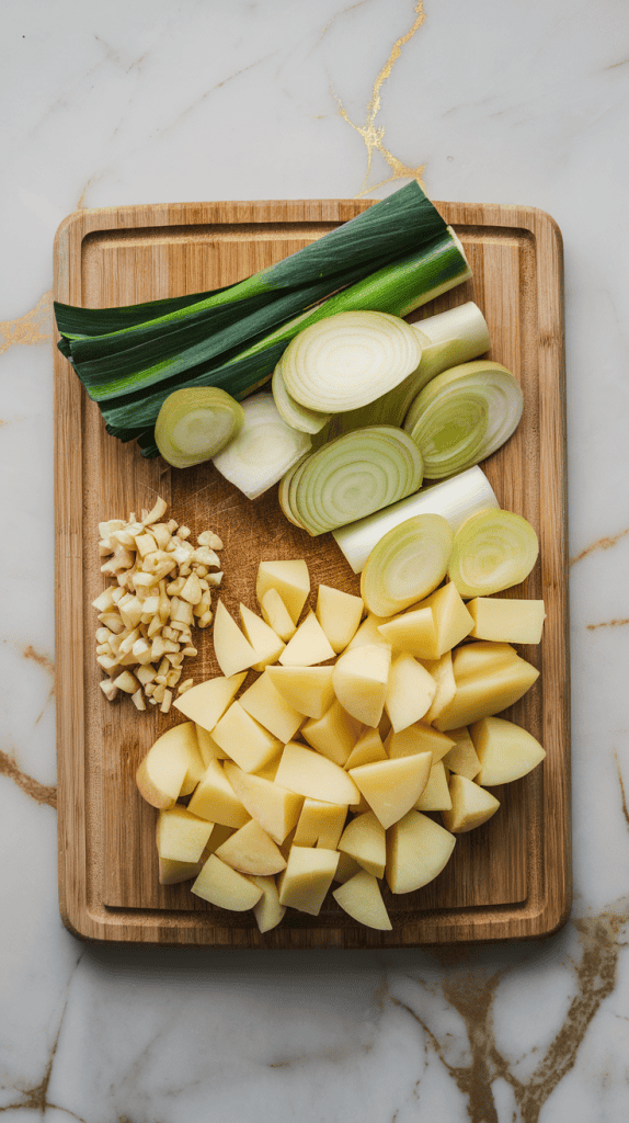Potatoes are full of natural starch, which thickens the soup without needing flour or cream. Leeks bring a subtle, sweet onion flavor that softens when sautéed. Blending everything together traps air in the soup, making it light and velvety.