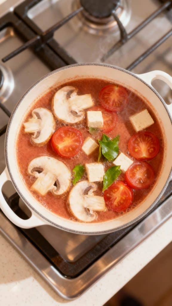 Tom Yum’s magic comes from layering aromatics like lemongrass and galangal with creamy coconut milk and tangy lime juice. The acid balances the fat, and the spice from red curry paste activates your taste buds. Tofu and mushrooms soak up all that bold flavor, making it satisfying and rich without needing meat or fish sauce.