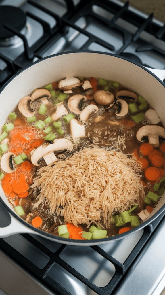 Step 4: Add wild rice and broth