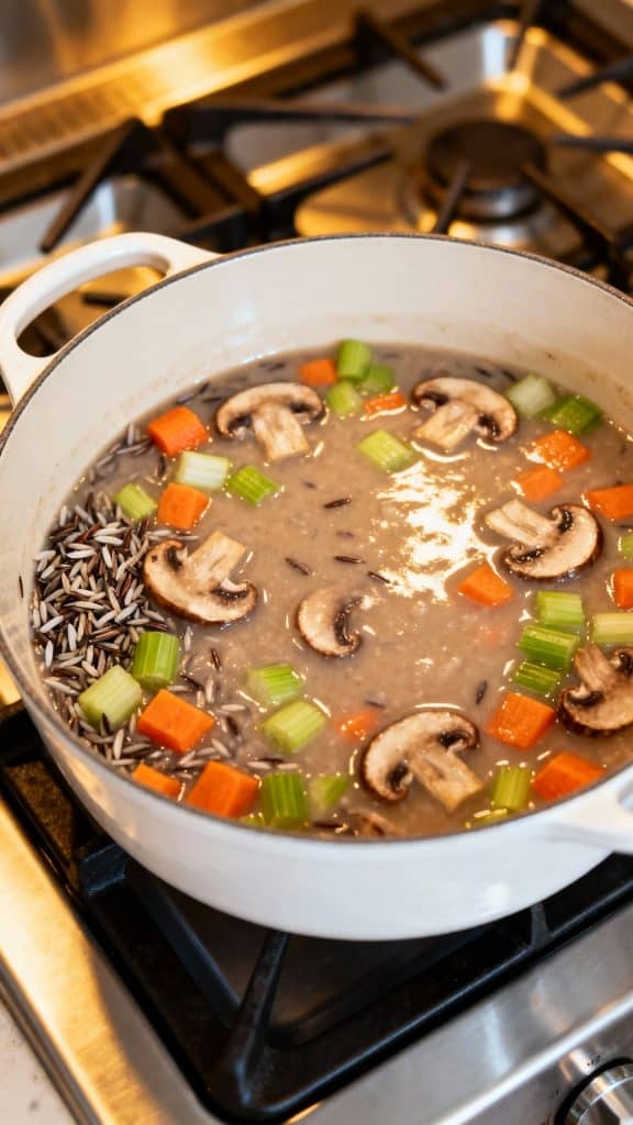 - Rinse your wild rice well—it removes extra starch and keeps the broth clean