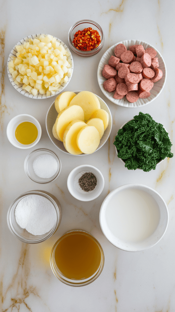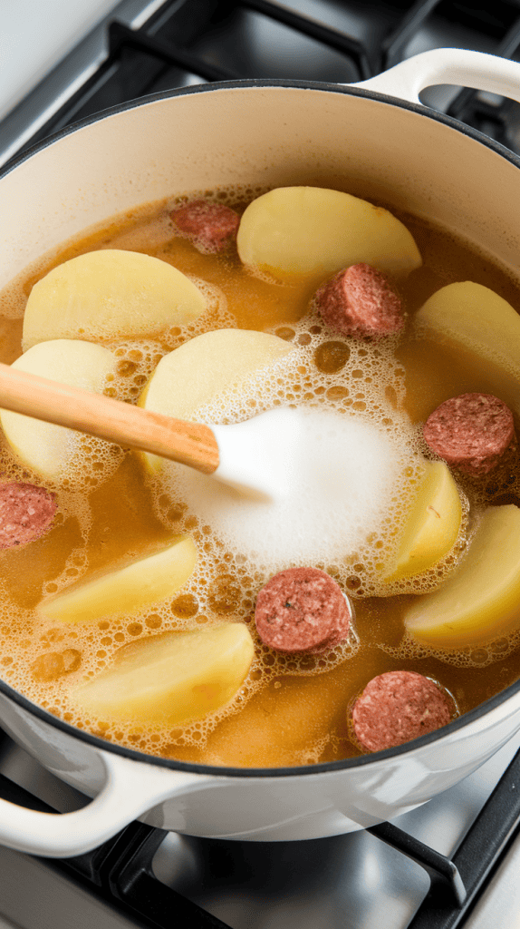 The creaminess comes from full-fat coconut milk or cashew cream, which blends smoothly into the soup without curdling. Vegan sausage brings all the savory depth you’d normally get from meat, while the starch in the potatoes naturally thickens the broth as it simmers.