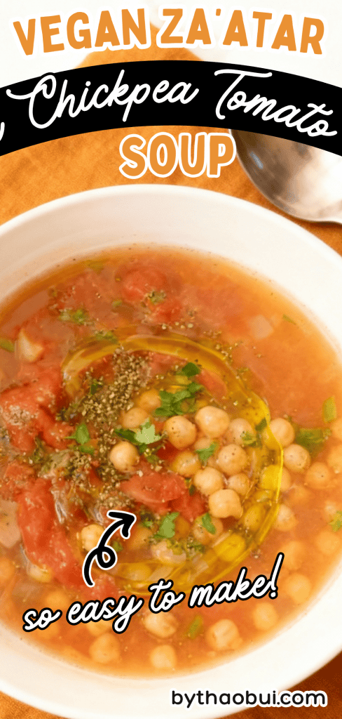 Za’atar adds brightness and depth with its mix of thyme, sumac, and sesame. Chickpeas bring plant-based protein and creaminess when simmered. The acidity from tomatoes and lemon balances the earthy spices, making the soup vibrant and rich without any cream.